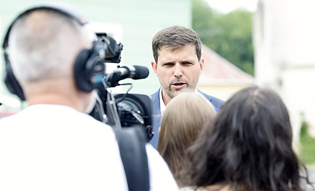 Ministr životního prostředí Petr Hladík na setkání s novináři v Dubé. (15. července 2025)