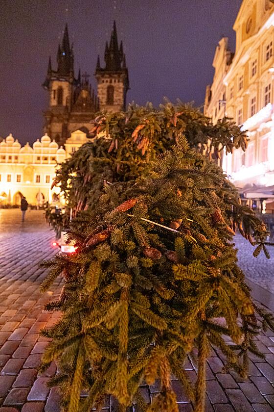 Na Staroměstské náměstí v Praze dorazil v noci vánoční strom. (26. listopadu 2024)