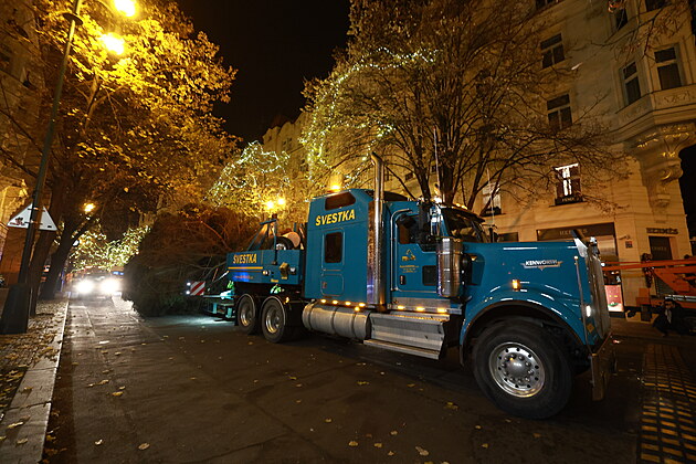 Na Staroměstské náměstí v Praze dorazil v noci vánoční strom. (26. listopadu 2024)