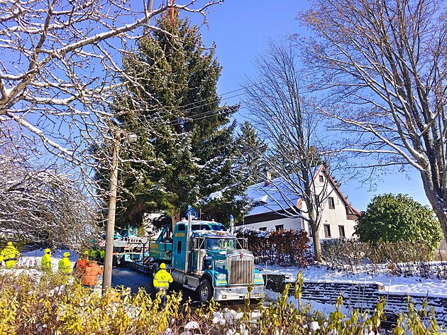 Kácení vánočního stromu pro pražské Staroměstské náměstí v českolipském Krompachu. (23. listopadu 2024)