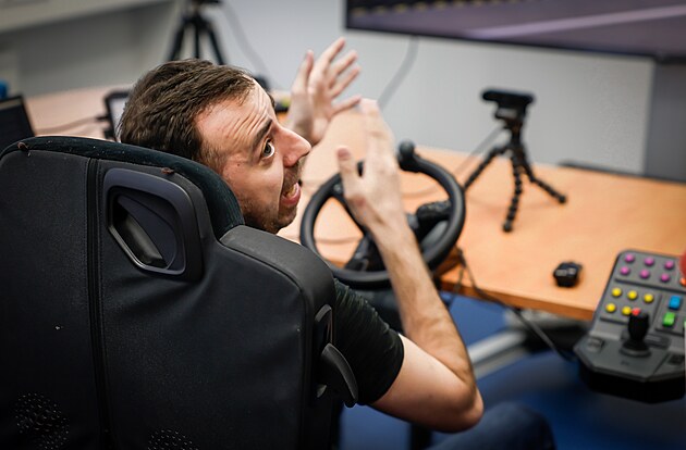 Vyvíjené triko se senzory může snížit počet dopravních nehod způsobených únavou. Na snímku Michal Martinka. (14. dubna 2025)