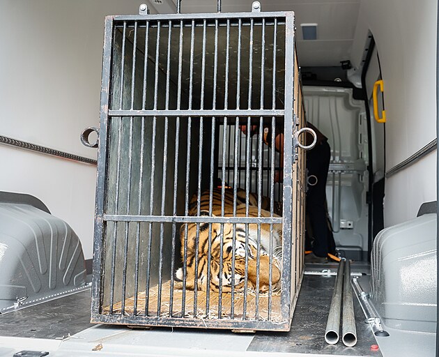 Tygr Tajmir, zabavený z nelegálního chovu, po čtyřech měsících péče v liberecké zoologické zahradě odjel do Nizozemska. (2. září 2025)