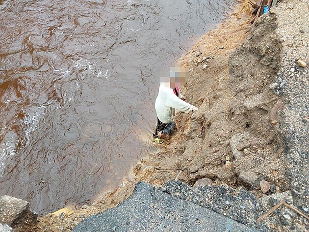 Žena se psem uvázla v korytu řeky. (18. července 2025)