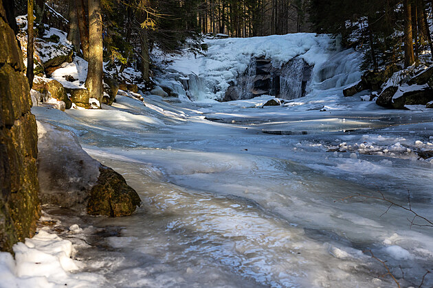 Mráz kouzlí s Mumlavským vodopádem. (24. únor 2025)