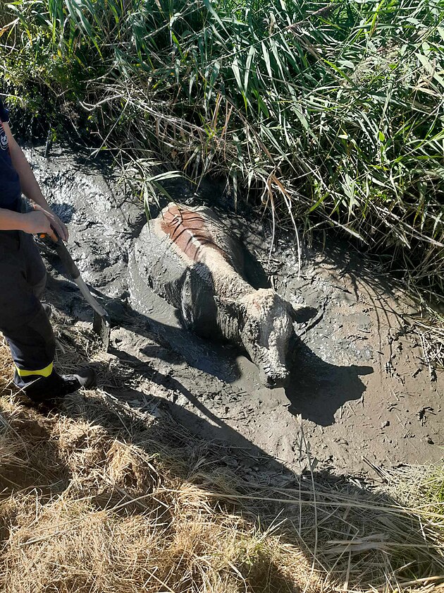 Netradiční výjezd zažili v úterý odpoledne hasiči v obci Dubá na Českolipsku. Zachraňovali zde krávu po krk zapadlou do bahna. (12. srpna 2025)