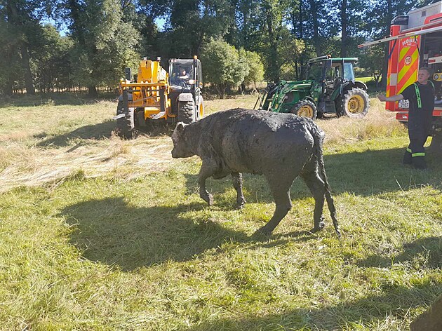 Netradiční výjezd zažili v úterý odpoledne hasiči v obci Dubá na Českolipsku. Zachraňovali zde krávu po krk zapadlou do bahna. (12. srpna 2025)