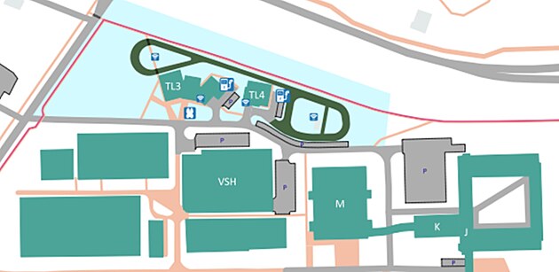 Nákres umístění zkušebního polygonu v areálu VŠ-TU Ostrava. (29. ledna 2025)