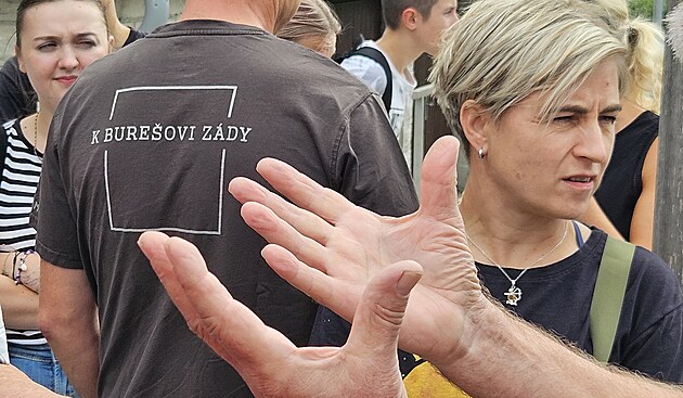 Protesty na mítinku Andreje Babiše v Kunčicích pod Ondřejníkem na Frýdecko-Místecku. (5. září 2025)