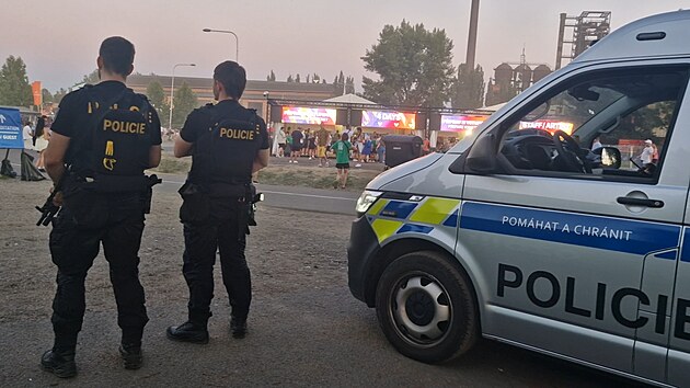 Policisté hlídkují poblíž areálu Dolních Vítkovic, kde se koná festival Beats for Love 2025.