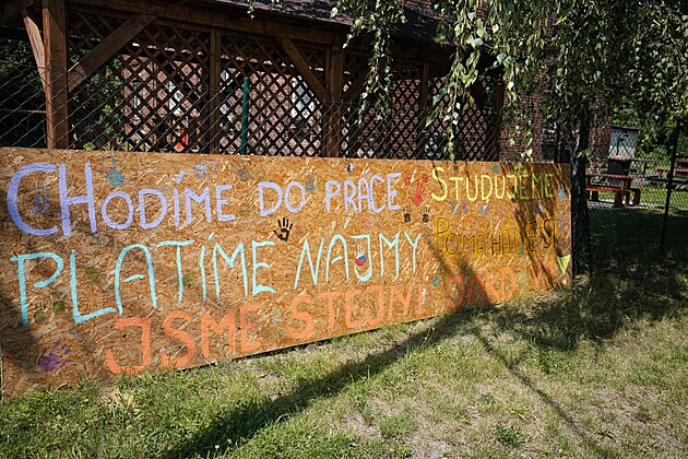 Transparent v kolonii Bedřiška při návštěvě prezidenta Petra Pavla (19. července 2024)