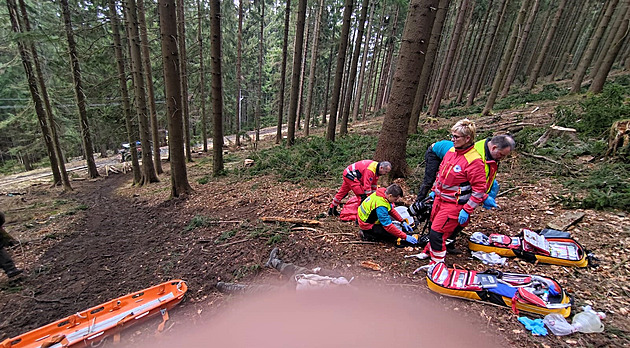 Sedmapadesátiletý muž pracoval při těžbě dřeva, když náhle zkolaboval. „Do komplikovaného terénu a prudkého svahu k němu jako první dorazili horští záchranáři, následně také posádky záchranné služby,“ přiblížil mluvčí.