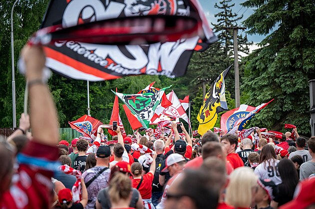 Třinečtí fanoušci jdou městem ke staré WerkAreně.