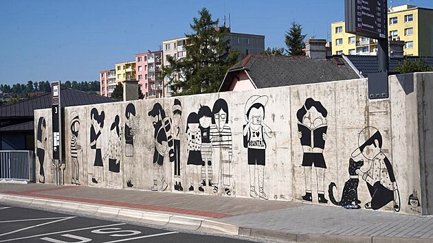 „Vznikl tak živý obraz každodenního života na nádraží, který působí přirozeně a blízce. Každý kolemjdoucí se v něm může snadno najít,“ komentovala černobílý mural na autobusovém stanovišti jeho autorka Nella Vilímková.
