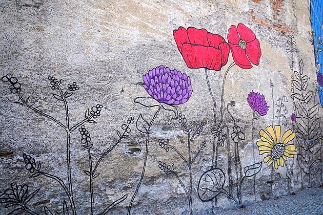 Barevná malba zdobí centrum města.