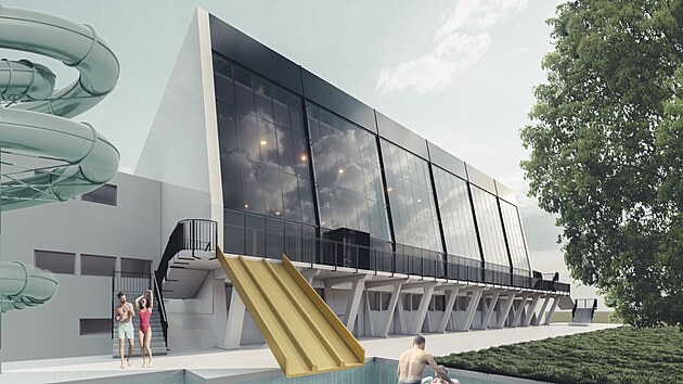 Vizualizace plánované budoucí podoby Vodního světa Sareza, takzvané Čapkárny, v Sokolské ulici v Ostravě. (20. listopadu 2024)