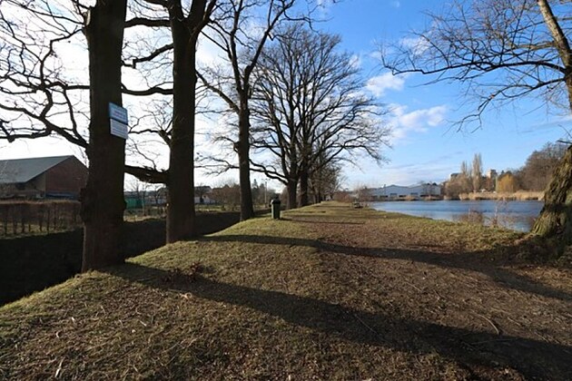 Rybník v Ostravě - Porubě kde byla nalezena mrtvola křížence československého vlčáka. (17. února 2025)