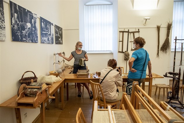 Součástí nové expozice v Centru tradičních technologií v Příboře je i rukodělná dílna, kde si lidé mohou vyzkoušet tradiční řemeslné postupy.