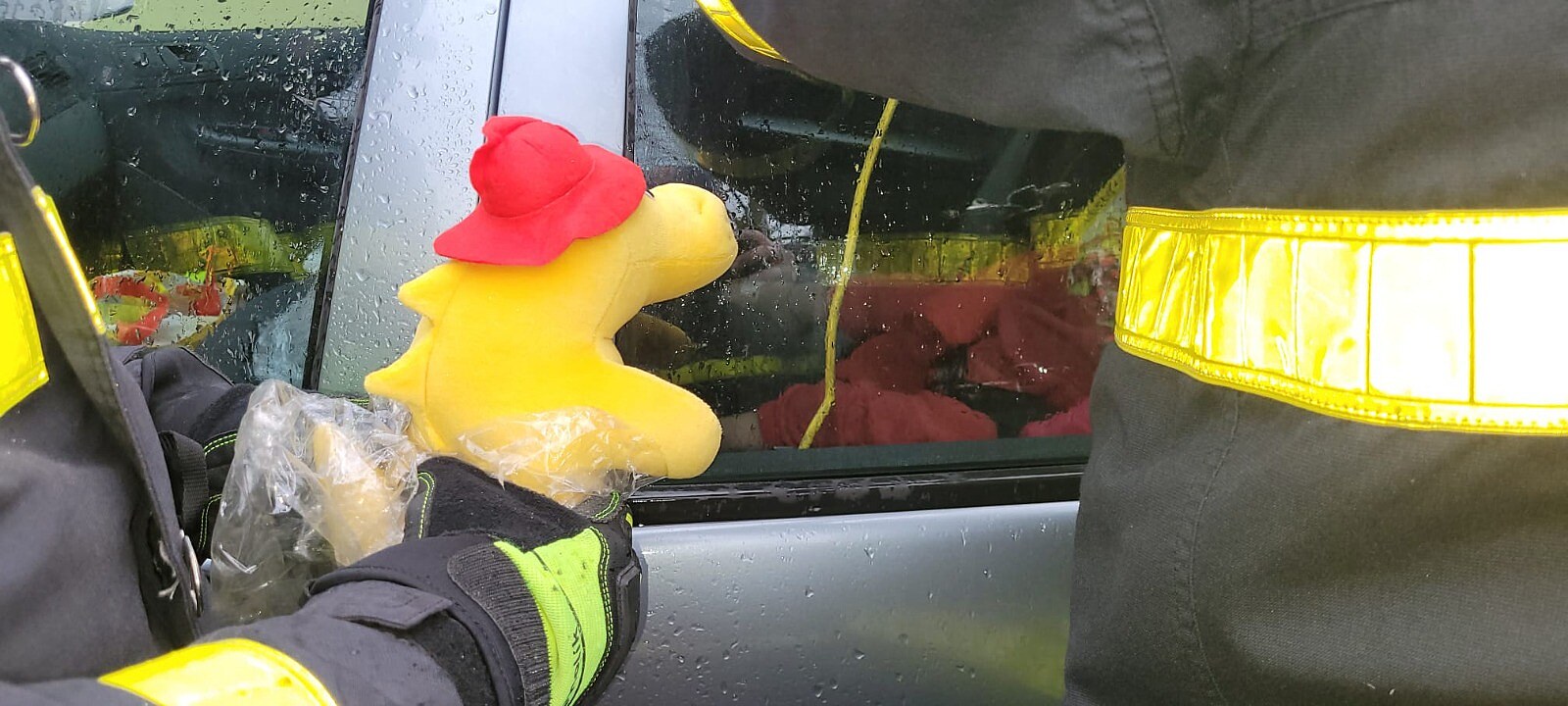 Zásah hasičů u holčičky uvězněné v uzamčeném automobilu v Chotěbuzi na Karvinsku (15. dubna 2025)