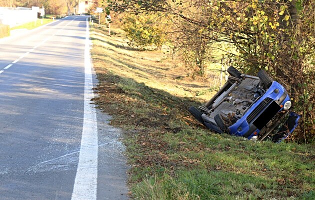 Vůz, který uprchlí mladí chovanci v Suchdole nad Odrou na Novojičínsku ukradli a zanedlouho s ním havarovali. (28. listopadu 2024)