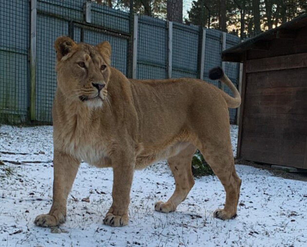 Samice lva indického ještě ve švédské zoologické zahradě. Nyní už však pobývá v Ostravě. (4. dubna 2025)