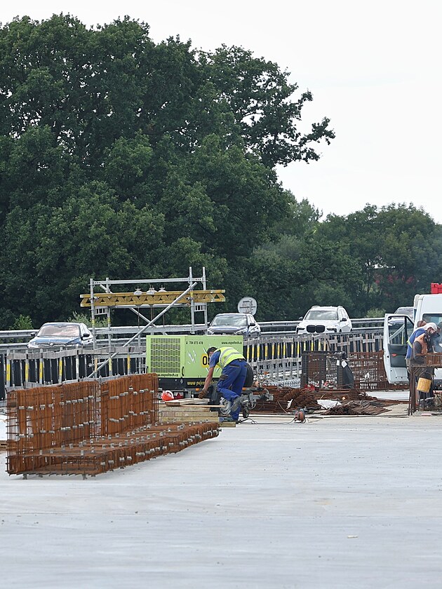 Silničáři opravují levý pás dálničního mostu mezi Velkými Albrechticemi a Bravanticemi na Novojičínsku. V úseku dlouhém zhruba 650 metrů platí dopravní omezení.