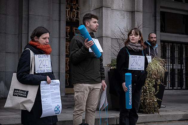 Před ostravským magistrátem se uskutečnil protestní happening za zachování výstavních aktivit v budově bývalého Bauhausu.