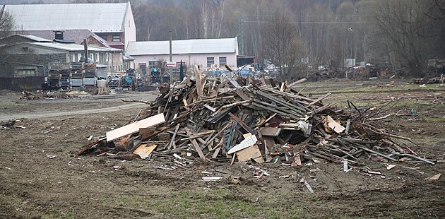 Následky loňských povodní jsou na mnoha místech Nových Heřminov stále hodně patrné. (12. března 2025)