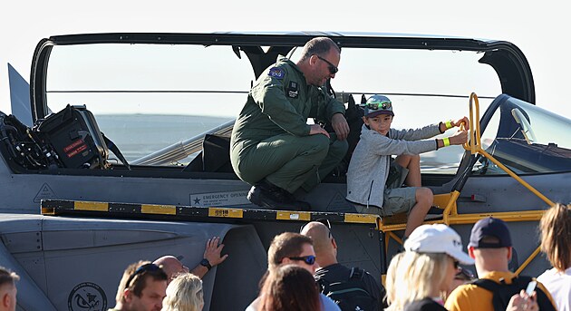 Na mošnovském letišti v sobotu odstartovaly Dny NATO. Na snímku je ukázka letounu Jas 39D. (20. září 2025)
