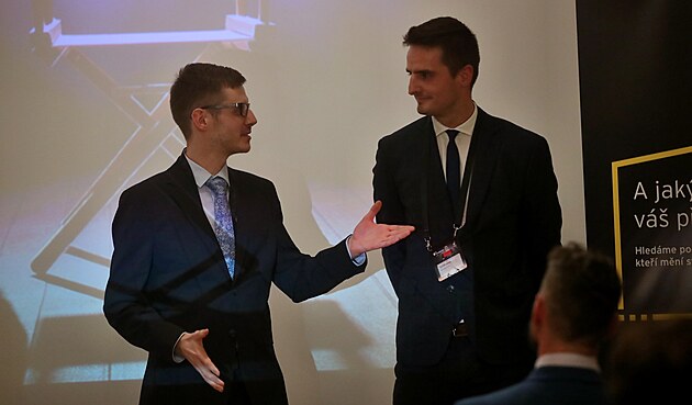 Moravskoslezským vítězem soutěže EY Podnikatel roku 2024 se stal Jiří Votava z firmy Brainmarket. V současnosti je v zahraničí, ocenění proto převzali další zástupci firmy Tomáš Černý (vpravo) a Marek Tomíček. (18. února 2025)