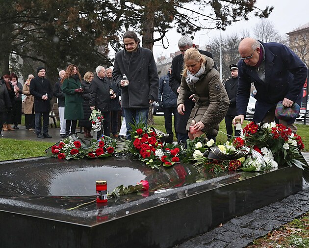 Lidé vzpomněli u památníku před Fakultní nemocnicí Ostrava na oběti šíleného vraha, který před pěti lety vraždil v jedné z čekáren. (10. prosince 2019)