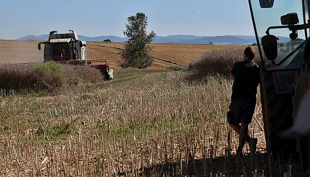 Žně 2025 v Bravanticích na Novojičínsku komplikuje počasí. Zemědělci - jako i Martin Lička - často čekají, až pole oschnou.