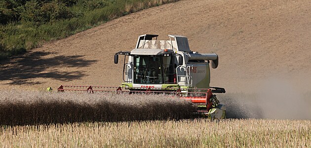 Žně 2025 v Bravanticích na Novojičínsku komplikuje počasí. Zemědělci - jako i Martin Lička - často čekají, až pole oschnou.