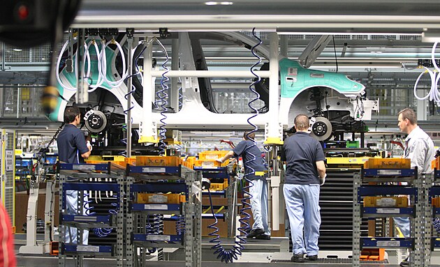Pohled do výroby nošovické automobilky Hyundai (23. března 2013)