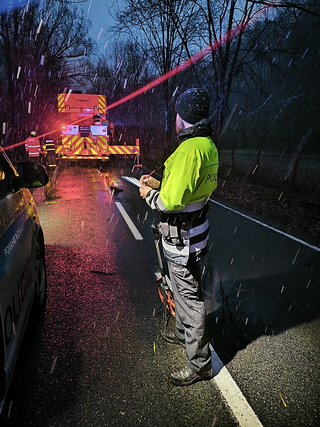 Policie vyšetřuje nehodu na silnici mezi obcemi Hukvaldy a Kozlovice. (14. března 2024)