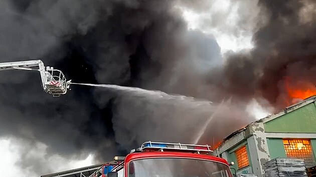 Ve Frenštátě pod Radhoštěm hoří skladovací hala