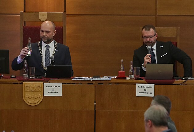 Hejtman a poslanec Josef Bělica (na snímku vlevo) předal funkci havířovského primátora svému stranickému kolegovi Ondřeji Baránkovi (ANO). (9. listopadu 2024)