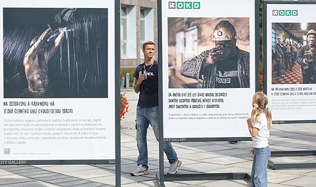 Putovní venkovní výstava hornických fotografií s názvem Odcházíme… s hlavou vztyčenou! vzdává hold lidem, kteří spojili svou profesi s náročnou prací na šachtách. Putovní výstava na Univerzitním náměstí v Karviné. (11. září 2025)