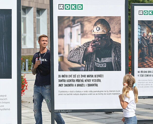 Putovní venkovní výstava hornických fotografií s názvem Odcházíme… s hlavou vztyčenou! vzdává hold lidem, kteří spojili svou profesi s náročnou prací na šachtách. Putovní výstava na Univerzitním náměstí v Karviné. (11. září 2025)