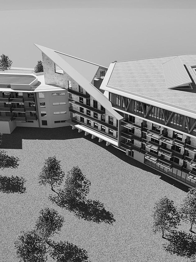 Vizualizace plánované budoucí podoby hotelu Banka v Trojanovicích na Novojičínsku. Proti projektu se zvedla vlna odporu. (13. srpna 2025)