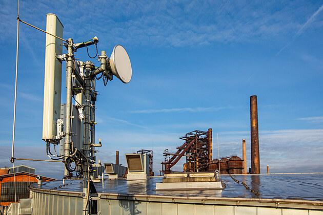 Antény 5G sítě společnosti O2 na střeše Velkého světa techniky v Dolní oblasti Vítkovice v Ostravě