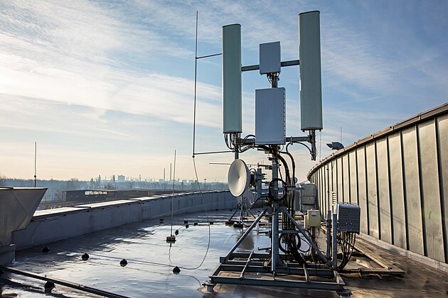 Antény 5G sítě společnosti O2 na střeše Velkého světa techniky v Dolní oblasti Vítkovice v Ostravě