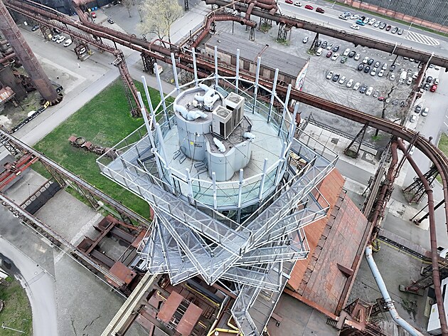 Antény 5G sítě společnosti O2 na střeše Velkého světa techniky v Dolní oblasti Vítkovice v Ostravě