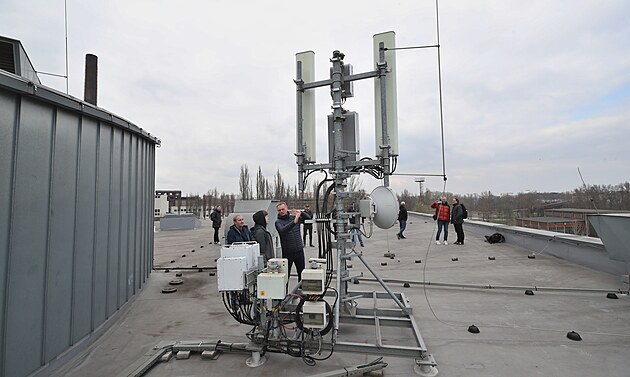 Antény 5G sítě společnosti O2 na střeše Velkého světa techniky v Dolní oblasti Vítkovice v Ostravě