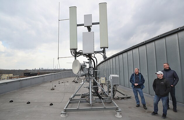 Antény 5G sítě společnosti O2 na střeše Velkého světa techniky v Dolní oblasti Vítkovice v Ostravě