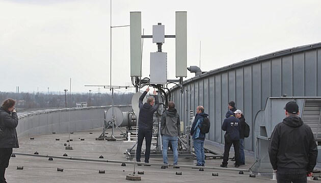 Antény 5G sítě společnosti O2 na střeše Velkého světa techniky v Dolní oblasti Vítkovice v Ostravě