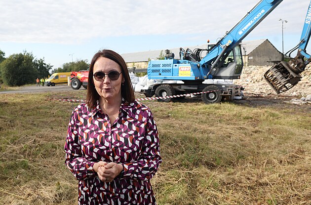 Starostka Jiříkova Barbora Šišková. Likvidace nelegální skládky v Těchanově u Jiříkova na Bruntálsku začala. (9. září 2025)