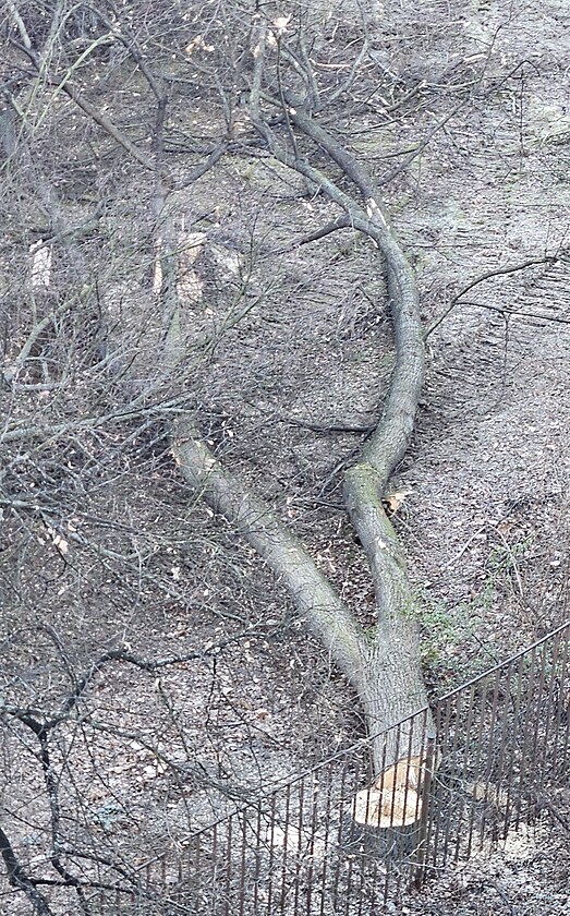 Následky plošného kácení v areálu budoucího krizového dětského centra Pluto v Havířově. (19. března 2025)