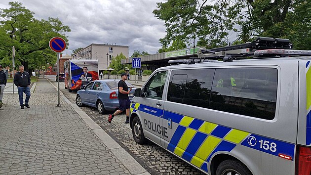 Před zahájením předvolebního setkání Andreje Babiše v Ostravě-Vítkovicích se na Mírovém náměstí stala nehoda, při níž se srazilo auto doprovázející kampaň ANO. (10. července 2025)