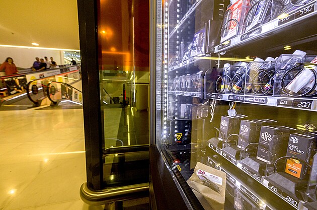 Látky, jejichž prodej chce ministerstvo zdravotnictví zakázat, lze sehnat například i v automatu ve velkém pražském nákupním centru.