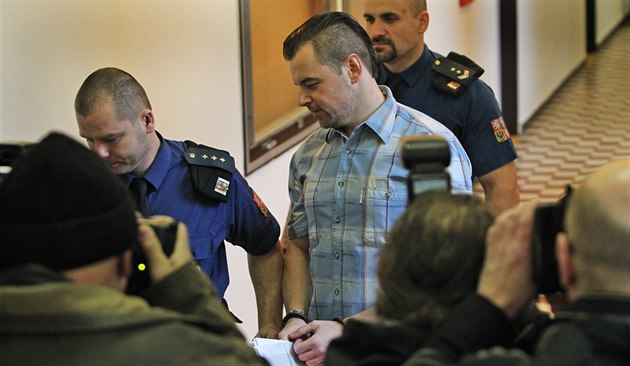 Justiční stráž Krajského soudu v Ostravě přivádí obžalovaného Petra Kramného k jednání do soudní síně.